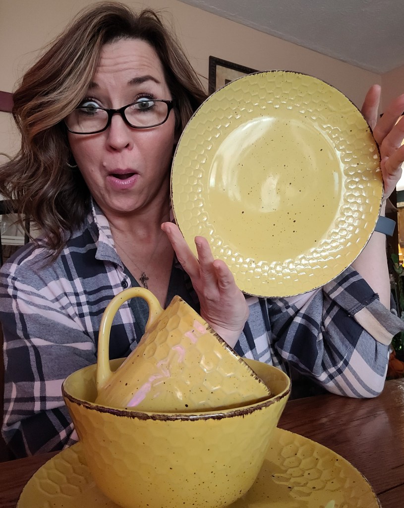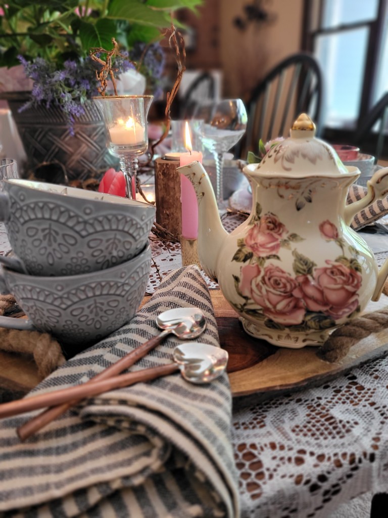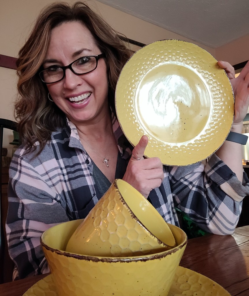 I honestly haven’t met a dish that I didn’t love! When I see a new pattern or come across a vintage set while thrifting, my adrenaline kicks into overdrive! My husband always laughs at me! Especially when a Pfaltzgraff shipment arrives, and I get so excited! I can’t wait to open the box! I can’t wait to feel the glaze, test the weight, match it with other patterns! The artist in me starts to generate thoughts of all types of tablesettings and color palettes… centerpieces and flowers! I LITERALLY can never WAIT to get started!! I think I could play with dishes and set tables all day every day!!! I have issues… hee hee 🙂